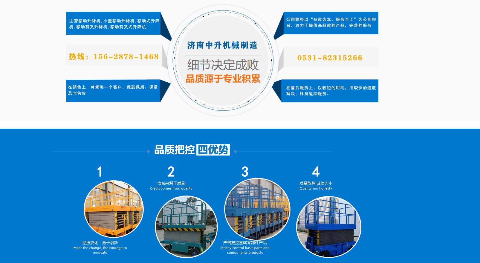 濟(jì)南中升機(jī)械制造有限公司主營移動(dòng)升降機(jī),小型移動(dòng)升降機(jī),移動(dòng)式升降機(jī),移動(dòng)剪叉升降機(jī),移動(dòng)剪叉式升降機(jī)等產(chǎn)品,信譽(yù)良好,歡迎前來咨詢訂購! 在銷售上,尊重每一個(gè)客戶,做到保質(zhì)、保量及時(shí)供貨;在售后服務(wù)上,以較短的時(shí)間,用較快的速度解決,終身追蹤服務(wù)。 公司始終以“品質(zhì)為本,服務(wù)至上”為公司宗旨。致力于提供高品質(zhì)的產(chǎn)品,完善的服務(wù),快捷的供貨,無論您身處何方,都能感受到我們的優(yōu)良服務(wù)。客戶至上,誠信為本。 歡迎各界朋友來電,來函垂詢,選購!...
